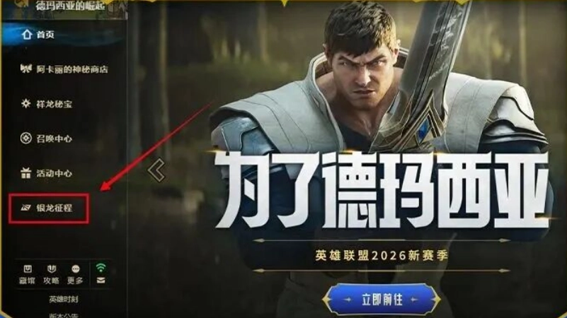 进入英雄联盟游戏客户端,点击左侧的银龙征程,输入正确的口令码即可。