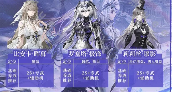 3、队伍搭配方面推荐布偶熊觅语、罗塞塔极锋、21号XXI,或者比安卡晖暮、罗塞塔极锋、莉莉丝谬影。