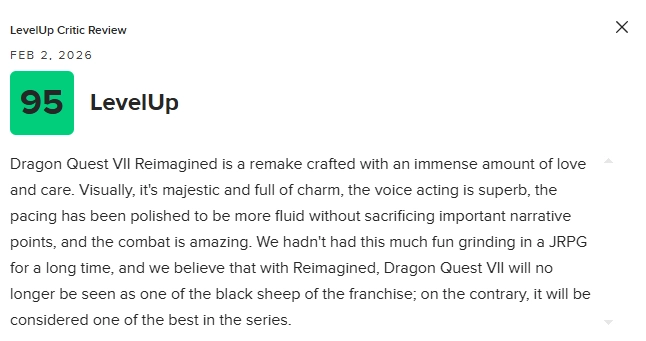 我们已经很久没有在一款JRPG中享受到如此纯粹、令人愉快的练级体验了。我们相信,凭借《重制版》,《勇者斗恶龙7》将不再被视为系列中的“异类”,相反,它有望被重新评价为该系列中最出色的作品之一。