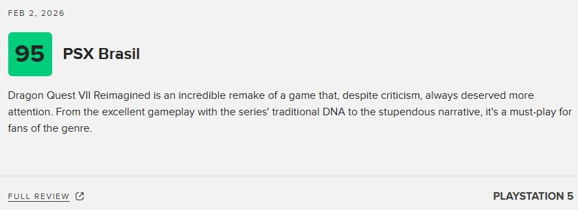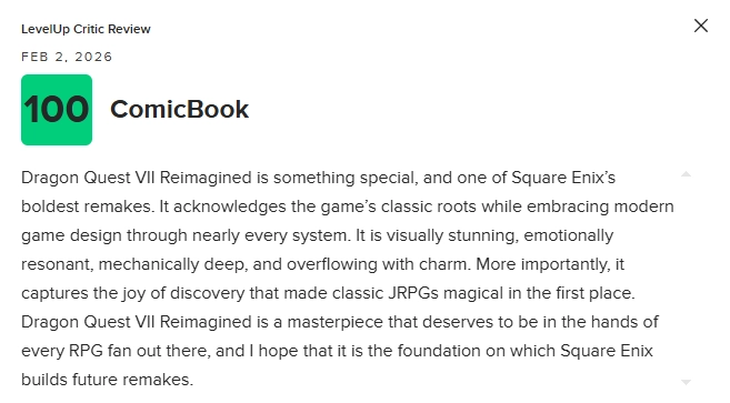 《勇者斗恶龙7:重制版》是一部相当特别的作品,也是史克威尔艾尼克斯迄今最为大胆的重制之一。它在尊重原作经典根基的同时,几乎在每一个系统层面都全面拥抱了现代游戏设计。游戏在视觉表现上令人惊艳,情感表达真挚动人,机制深度扎实,同时充满了《勇者斗恶龙》系列特有的魅力。